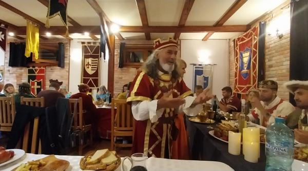 El este și cel care selectează oaspeții pe care îi transformă în actori ad-hoc. Doar după o singură repetiție, în culise, turiștii își intră de fiecare dată în roluri și devin actori excelenți, în fața prietenilor sau a colegilor. De fapt, toată lumea intră în spectacol, încă de la început, pentru că toți mesenii salonului medieval îmbracă mai întâi straie de curte, iar masa imită un ospăț domnesc din Evul Mediu.