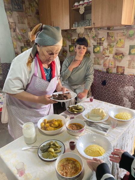 „Le fac tocană cu cartofi, afumătură și cârnați de casă. Mai fac supă cu tăiței, tot de casă, balmoș, iar la desert gogoși simple, cu dulceață sau brânză. Pun pe masă și sticle cu rachiu și vișinată, să se omenească bine”, povestește Maria Hoadrea, care va împlini luna viitoare 75 de ani.