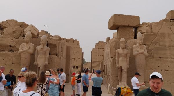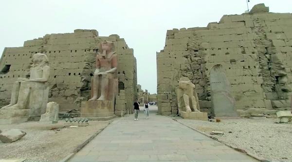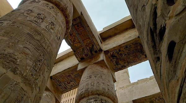„Aici era o sală care despărțea lumea de afară de spațiul sacru din templu, făcând trecerea spre sanctuar. Nu aveau acces toți oamenii în aceste săli, ci doar sacerdoții. Coloanele sunt așezate astfel, foarte aproape una de alta, pentru că la fel crește pe câmp planta de papirus”, a explicat ghidul Mohamed Hamed, vorbitor de limba română, care reprezintă în Egipt agenția românească Christian Tour.