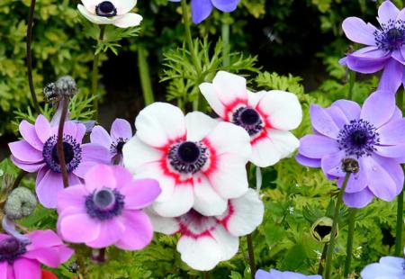 Anemone blanda – cu flori mai mici, în nuanțe de albastru, alb sau roz, ideale pentru stâncării sau borduri.