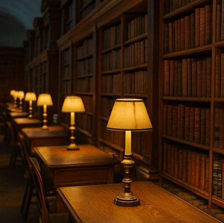 Imaginea 5: O bibliotecă veche cu lumini calde