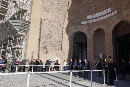 Astăzi, cortegiul funerar s-a mutat la Bazilica Santa Maria degli Angeli e dei Martiri, impresionanta biserică proiectată de Michelangelo în secolul al XVI-lea, situată în centrul Romei, unde a avut loc ceremonia funerară.