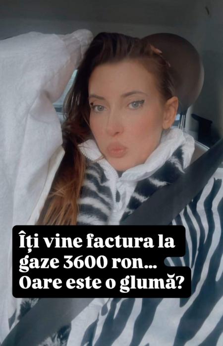 „Îți vine factura la gaze 3.600 ron... Oare este o glumă?”, a scris vedeta, subliniind că mulți români muncesc din greu o lună întreagă pentru ma puțin bani.