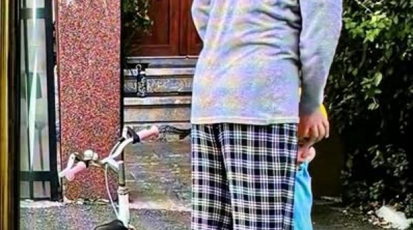 Acesta a fost surprins pe stradă în pantaloni de pijama și șlapi mov.
