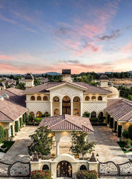 Proprietatea are circa 1.600 de metri pătrați și include tavane înalte de aproximativ nouă metri, grădini amenajate, fântâni arteziene, o sală de cinema, precum și facilități pentru parcare și depozitare, inclusiv spații pentru mai multe vehicule și o barcă.