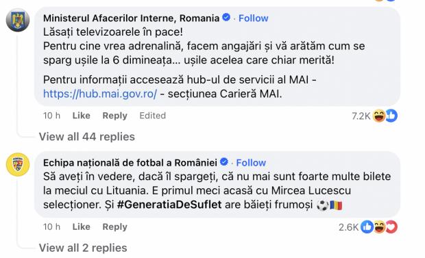 Ministerul Afacerilor Interne: Lăsați televizoarele în pace! Pentru cine vrea adrenalină, facem angajări și vă arătăm cum se sparg ușile la 6 dimineața… ușile acelea care chiar merită! Pentru informații accesează hub-ul de servicii al MAI - https://hub.mai.gov.ro/ - secțiunea Carieră MAI.