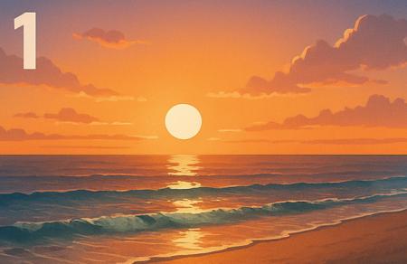 1. O plajă liniștită la apus