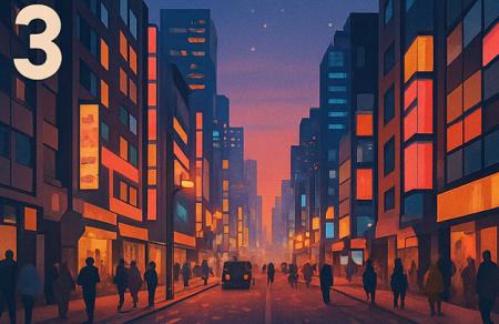 3. Un oraș vibrant, cu străzi aglomerate și lumini colorate
