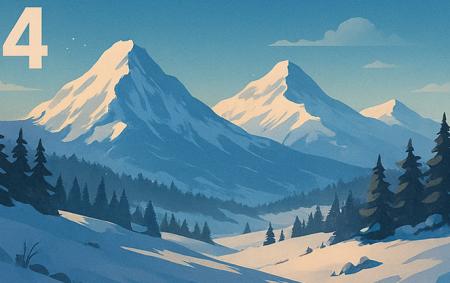 4. Un peisaj montan izolat, acoperit cu zăpadă și cer senin