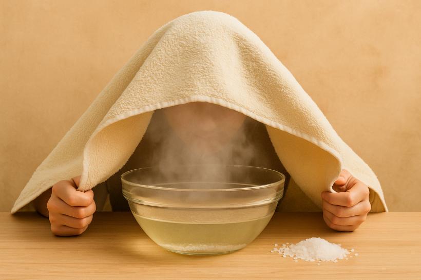 Vaporii cu sare ajută la calmarea iritației gâtului și fluidificarea secrețiilor.